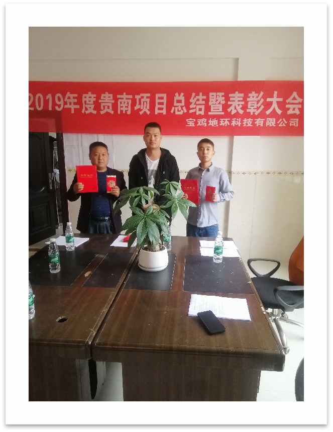 2020年1月13日,寶雞地環(huán)科技有限公司在貴南項目部召開項目年終總結暨表彰大會。貴南項目全體成員參會,公司總經理安義兵代表公司為此次大會發(fā)來了賀信。